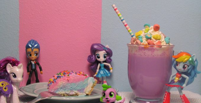 Unicorn Cheesecake & Unicorn Hot Chocolate I am Really Into sprinkles. My daughter is Really Into My Little Pony: Equestria Girls. So when I saw this Delish video on Facebook the other day, I knew we had to get this recipe going. It’s easy enough & actually a damn good no bake cheesecake recipe. We opted to not use the yellow food coloring because we felt it fit more into the Equestria Girls color scheme to use white, pink, purple & blue. The cake was pretty creamy & surprisingly not too sugary & my daughter loved it. She’s Not Really Into sweets, so that’s a win in my book. I also opted to use a shortbread crust & it was super tasty. Rarity & Flash seemed to like the look of it. I figured why we were on a sprinkle kick, let’s just go all out & make this Unicorn Hot Chocolate from Delish. We opted to just use pink & blue food coloring in the milk because we were fresh out of pink & blue sprinkles. Then we whisked in some Nestle white chocolate chips while my son was sorting the Lucky Charms marshmallows. No way were we using the actual cereal pieces in our hot chocolate, so much better with just sugar. We decided to not make the whip cream from scratch because we are lazy like that. We didn’t add food coloring either because my daughter felt the whip cream remaining white would highlight the marshmallows. I swear I’m raising a stylist. Seems like the pony version of Rarity is Really Into this drink. After our sugar coma, we took a long nap & played Equestria girls & sang along to Rainbow Rocks. My kids are Really Into this movie right now & it’s on a constant Netflix loop in our house. This was my first Delish recipe & I will definitely be trying more. The cocoa and the cake were delicious & would be great for a party, a sleepover, a tea party or in place of a birthday cake. Have you tried any Delish recipes or are you Really Into the unicorn craze? I really want to find a unicorn cafe. How fun would that be?